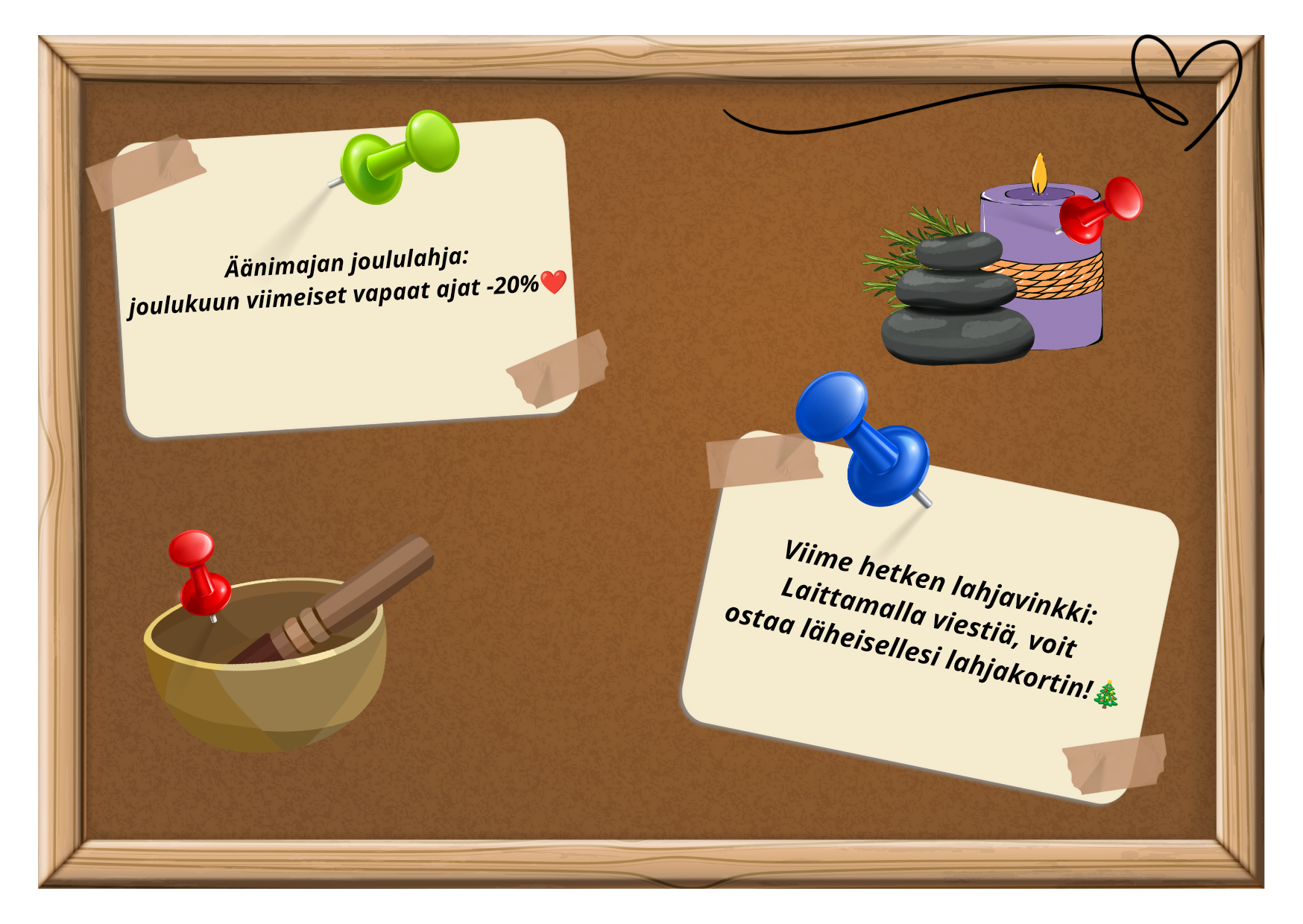 "Kiitos paljon äänimaljahoidosta. Se oli, jotain aivan uskomatonta. En muista koskaan ennen kokeneeni niin upeaa ja syvärentouttavaa äänimaljahoitoa. Olit niin läsnä ja rauhallinen, että tunsin oloni aivan mielettömän turvalliseksi. Sain myös valtavasti apua kipuihin, joita mulla oli ennen äänimaljahoitoa. Sen jälkeen ei ollut enää mitään. Kiitos tuhannesti. Olet niin luotu tähän hommaan!"